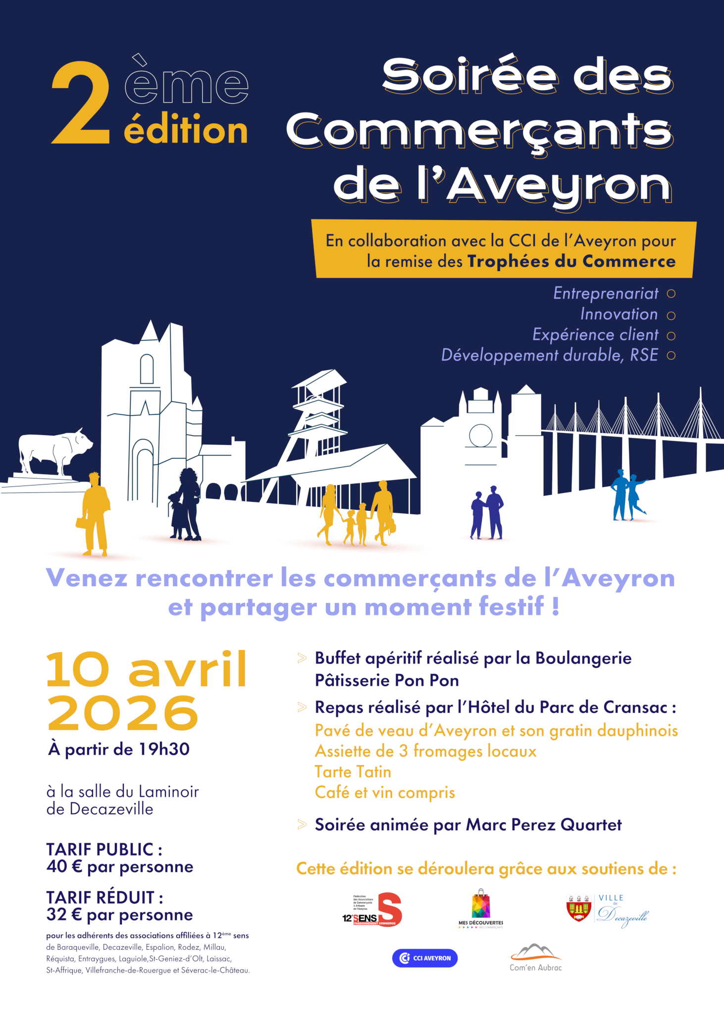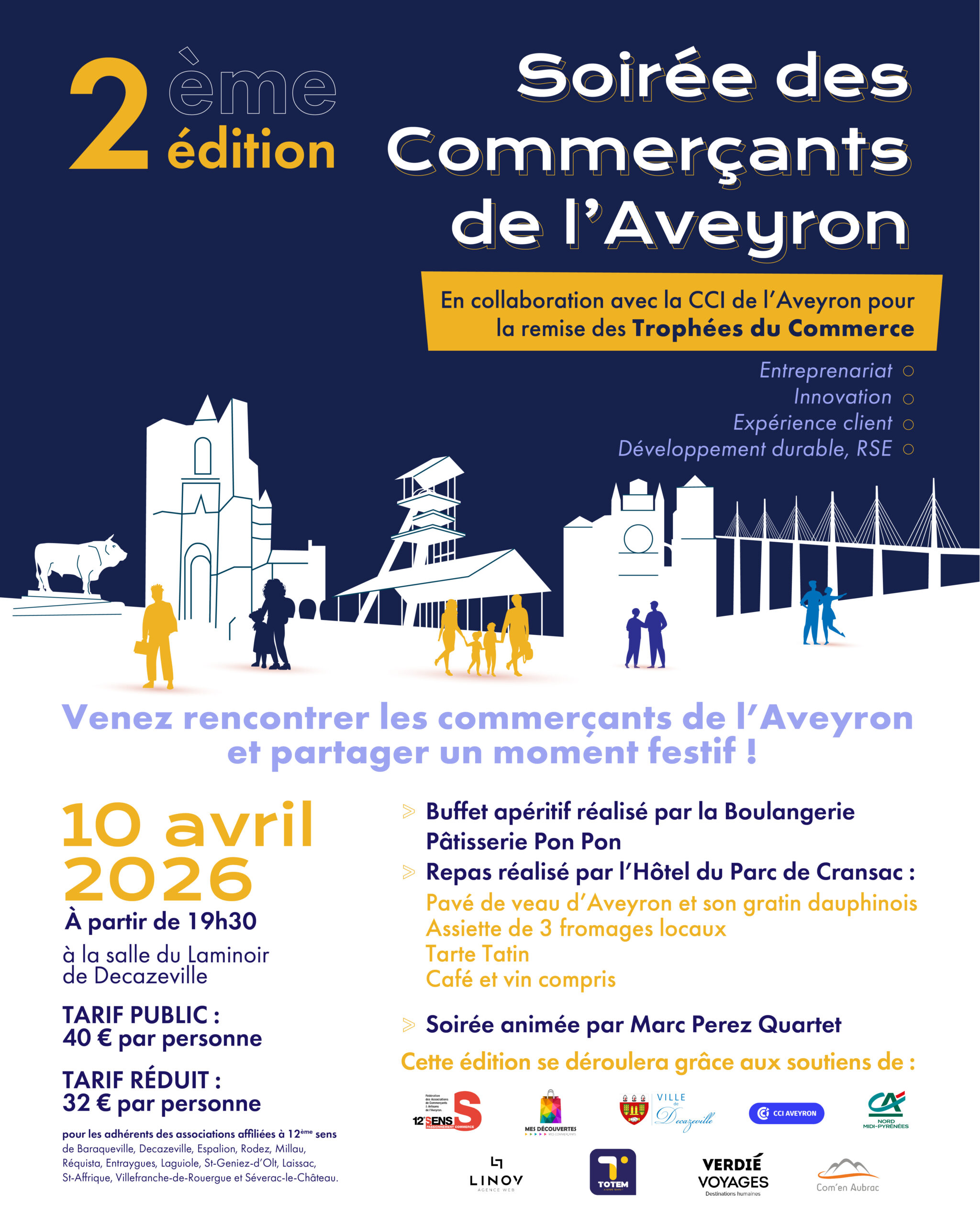 Moment fort de la soirée : la remise des Trophées du Commerce 2026, qui mettra à l’honneur les commerçants les plus dynamiques de l’Aveyron.